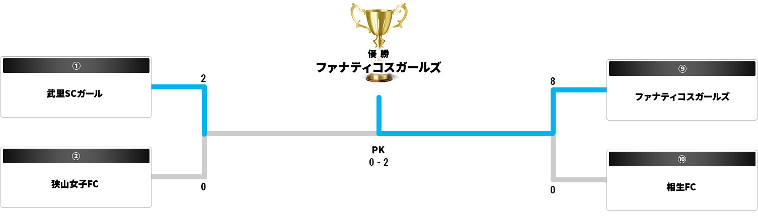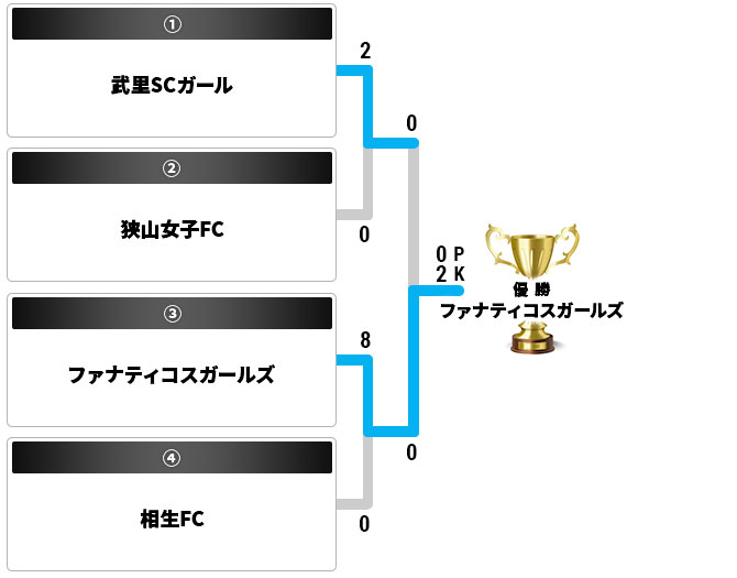 | F3 | FCブルーストライカーズ | ● 1-2 | ● 0-9 | ◯ 5-0 | 1勝 0分 2敗 | 3 | 6 | 11 | |