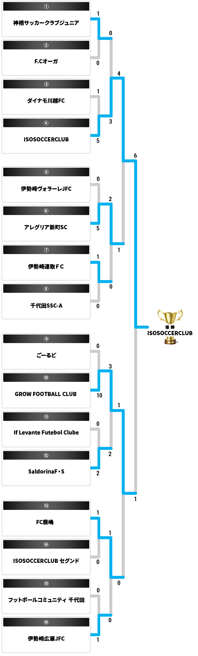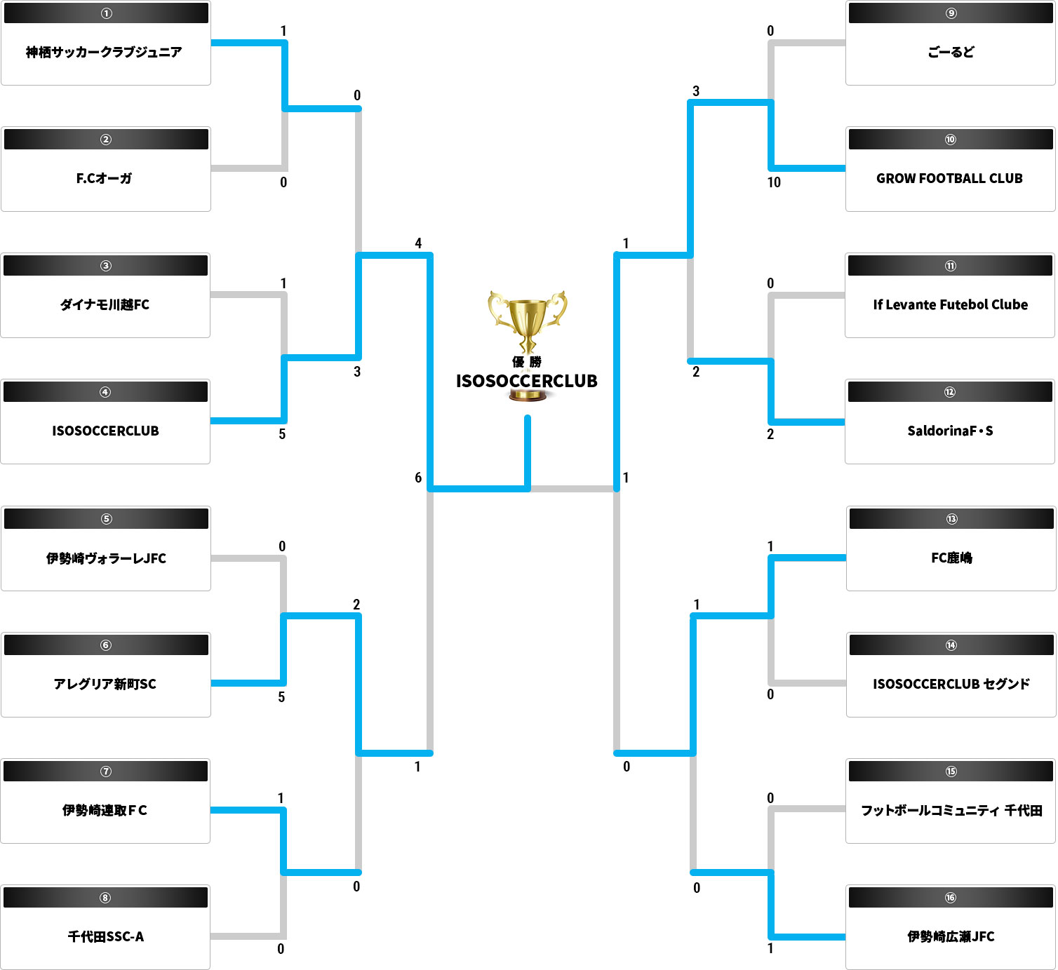| F2 | ISOSOCCERCLUB | ◯ 8-1 | ◯ 9-0 | ● 1-2 | 2勝 0分 1敗 | 6 | 18 | 3 | |